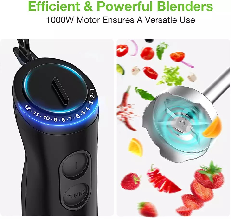400W Variable Speed Immersion Hand Blender Set Includes BPA-Free Food Chopper/Egg Beater/Beaker